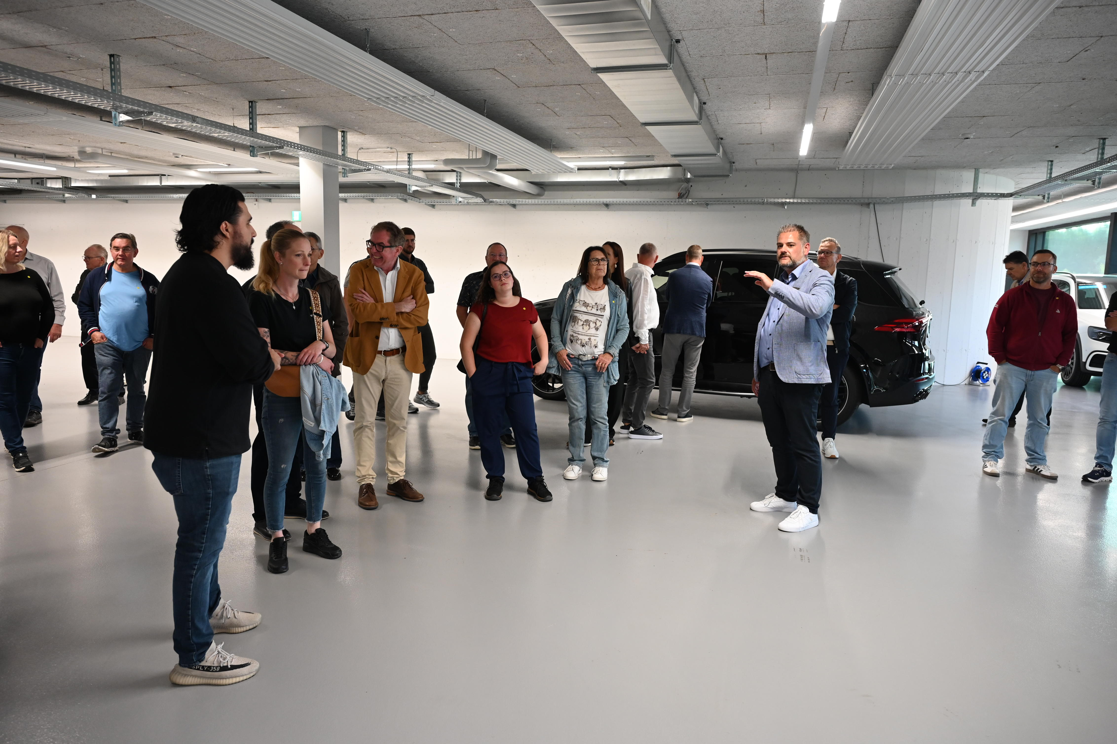 Alexander Winiger, der Verkaufsberater Personenwagen, führte durch den modernsten Showroom der Schweiz, zeigte die drei Lifte (zwei für Fahrzeuge, einer für ganz schwere Kaliber) in der Werkstatt und erklärte in der Reifenwerkstatt mit 4500 Positionen stolz, dass die Lueg-Mitarbeiter die Reifen im Formel-1-Tempo wechseln können. Erstaunt erfuhren die Donatoren, dass die Lueg AG zwar Mercedes verkauft, aber auch über einen Parkplatz im UG für 250Velos (und 50 vor dem Haus) verfügt. Beeindruckend ausgestattet sind zudem der Occassionsplatz und das Neuwagenlager. Überall ersichtlich sind das Qualitätsbewusstsein und die deutsche Gründlichkeit des Unternehmens mit dem just 100-jährigen Markenzeichen, dem dreizackigen Stern.