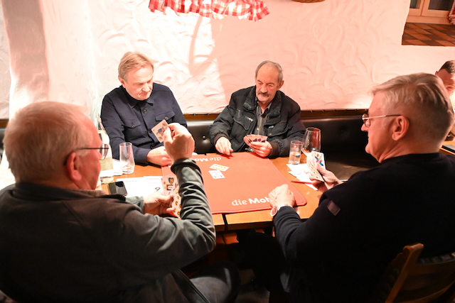 Weil draussen der April beim Wetter Regie führte, lud Clubmitglied Franco Diana die Donatoren beim Apéro nach drinnen. Die einen oder anderen der mehr als 40 Donatoren prosteten bereits so zu, als ob sie Gewinner wären. Nachdem Nachtessen mit bierschweinischer Wurst und Pizzeria-Pommes verteilten dieSchiedsrichter die ersten 36 Karten auf die Tische. In diesem Jahr stellten sich alt-Goalie und FC-Sursee-Ehrenpräsident Roli Huber, Valiant-Kassier Rouven Broch und alt-Donatoren-Präsident Paul Furrer als Regelhüter zur Verfügung. Für einmal mischelte der alt-bewährte Schiri Werner Funk mit, während Langzeit-SchiedsrichterGuido Sieger mit Abwesenheit glänzte.